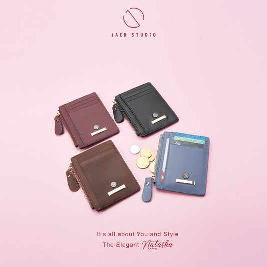 Jack Studio Natasha Genuine Leather Ladies Card Holder with Zip Credit Card Case Mini Wallet Purse Woman - JWB 21076