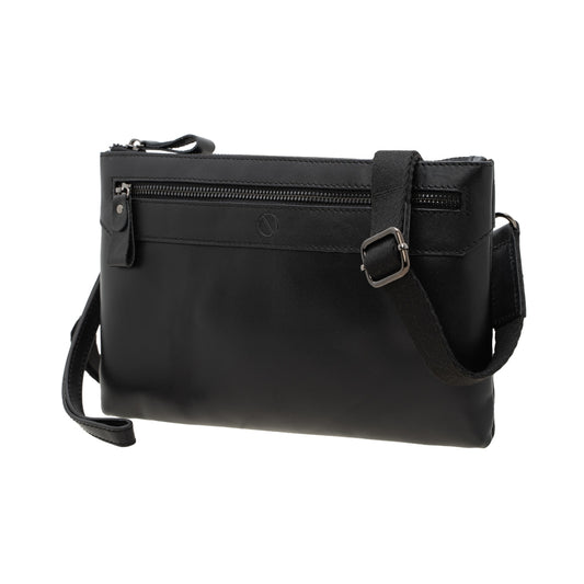Jack Studio Top Grain Leather Slim Black Men’s Clutch Sling Crossbody Bag - BAI 40199 A